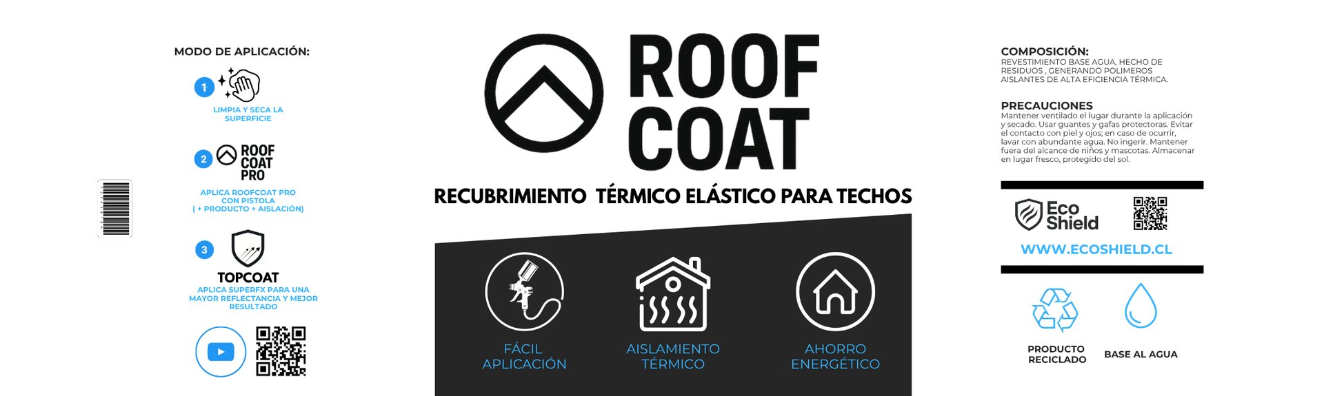 ROOF COAT es un producto innovador en la industria de Pinturas y Revestimientos ya que sus piedades de Aislación Térmica provienen del desarrollo de una materia prima polimérica proveniente de la recuperación de esta en los recintos de reciclaje. El material recogido de estos puntos de reciclaje no es bío degradable por lo tanto el énfasis de ECO SHIELD de haber desarrollado con ellos productos útiles para la sociedad aporta al proceso de limpieza del planeta.